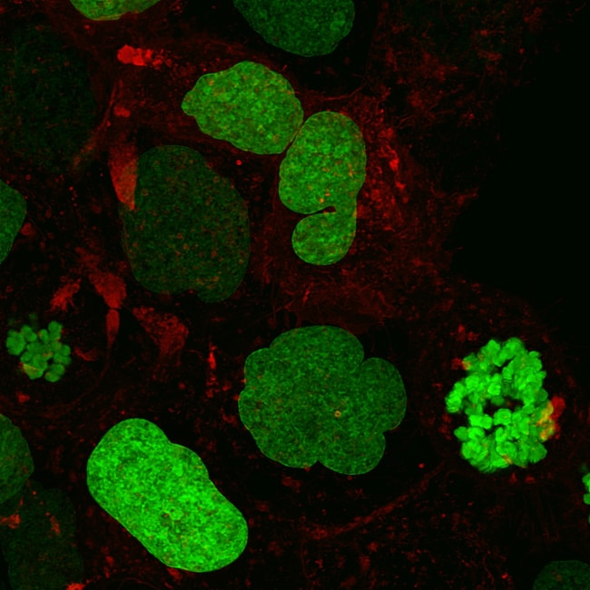Bright, green fluorescent nuclear label for live-cell imaging—no fixation, staining, or cell lysis required. Visualize nuclei and cellular dynamics in real time, over hours to days, in living cells. Delivered via Montana Molecular’s Big Sky BacMam vector for enhanced expression across a wide range of cell types, including primary cultures and iPSCs. Targeted to nucleus via NLS. Ideal for dynamic, non-destructive studies of cellular phenotypes, cell tracking, and high-content imaging.