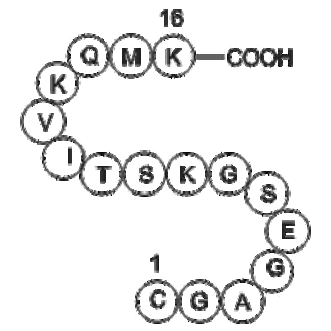 GTP-Binding Protein Fragment G alpha is a peptide fragment derived from the amino-terminal region of the alpha subunit of GTP-binding proteins It is designed to aid in elucidating the mechanisms of membrane association and -subunit interactions in cell signaling pathways GTP-Binding Protein Fragment G alpha exerts its biological activity by retaining membrane-binding properties independent of the nucleotide-binding state anchoring the protein to the cytoplasmic membrane surface This peptide fragment serves as an experimental tool to study membrane-association mechanisms and signal transduction pathways in biochemical and biomedical research Based on these properties GTP-Binding Protein Fragment G alpha holds research potential in investigating the molecular basis of G protein-mediated signal transduction and protein-membrane interactions