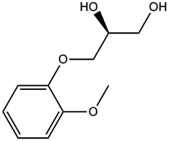 Guaifenesin (93-14-1) is a small-molecule expectorant designed to modulate respiratory epithelial cell secretion thereby regulating mucus viscosity and bronchial mucus clearance in the respiratory tract Guaifenesin exerts its biological activity primarily through enhancement of respiratory tract hydration and reduction of mucus viscosity via direct modulation of respiratory epithelial cells Based on these pharmacological properties guaifenesin holds research potential in studies of mucus clearance mechanisms bronchial secretion regulation and potential application in neuromuscular activity modulation with exploratory investigations in fibromyalgia symptom management and reproductive biology