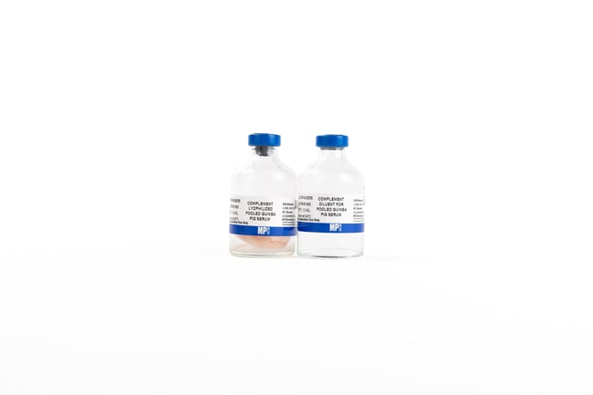 Pooled guinea pig serum is rapidly collected and frozen, preserving complement activity, and lyophilized. It is specially collected and processed under cold room conditions which maintains maximum complement activity. Guinea pig serum characterized for both classical and alternative pathway activity. Guinea pig serum complement is suitable for in vitro experiments relating to complement activation. It has been widely used in biomaterials research and pharmaceutical development. It is ideal for experiments and assays for which a high level of in vitro complement activity is necessary or a low level of complement activation fragments is required.