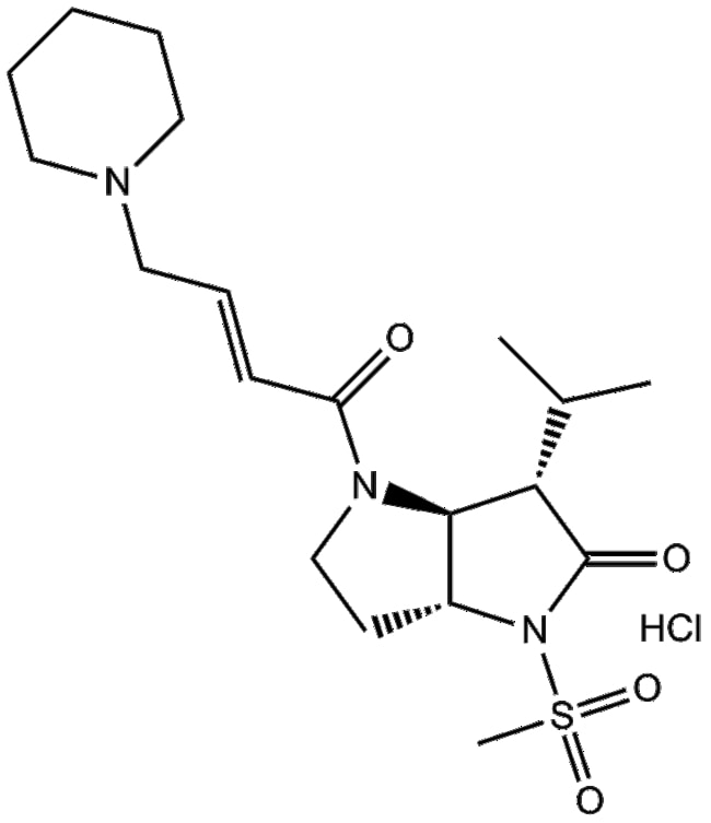GW311616 hydrochloride (CAS 197890-44-1) is a selective cell-permeable inhibitor of human neutrophil elastase (HNE) exhibiting an IC50 of 22 nM and a Ki of 0 13 nM in enzymatic assays It demonstrates pronounced selectivity with IC50 values exceeding 100 M for trypsin cathepsin G and plasmin and greater than 3 M for chymotrypsin and tissue plasminogen activator In human whole blood assays GW311616 hydrochloride achieves an IC50 of 0 67 M The compound is orally bioavailable and displays prolonged activity in dog blood samples indicating a sustained inhibitory effect on neutrophil elastase GW311616 hydrochloride is valuable for investigating HNE s role in inflammation and related pathologies