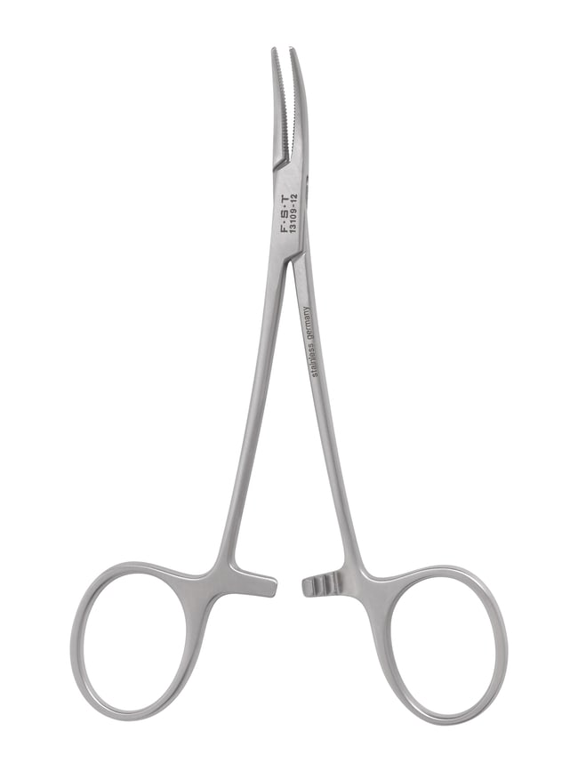 Fine Science Tools Halsted-Mosquito Hemostats (Left-Handed), Stainless Steel, Curved, 12.5 cm