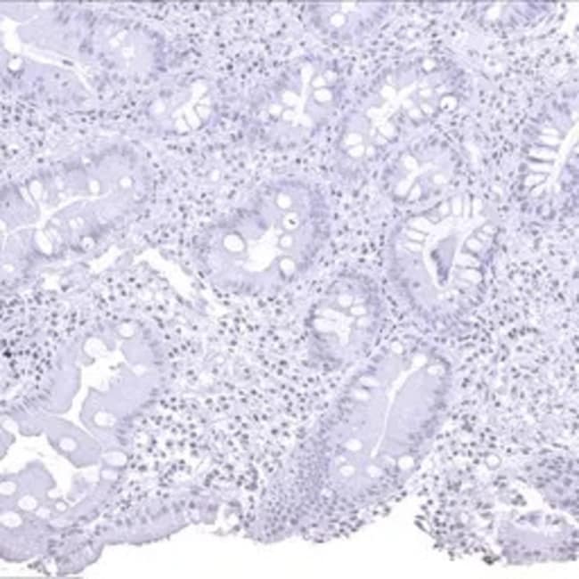 The Helicobacter pylori Catalase antibody [MSVA-466M] HistoMAX™ (GTX04479) is a Mouse Monoclonal antibody in the GeneTex HistoMAX portfolio. The antibody is extensively evaluated for IHC-P using formalin-fixed human normal tissues (more than 70 different sections) and cancer tissue arrays to guarantee specificity and best-in-class performance. Information regarding both manual and autostainer staining protocols are available.Figure Legend: IHC-P analysis of human stomach tissue using GTX04479 Helicobacter pylori Catalase antibody [MSVA-466M] HistoMAX. Complete absence of helicobacter pylori in a stomach biopsy.