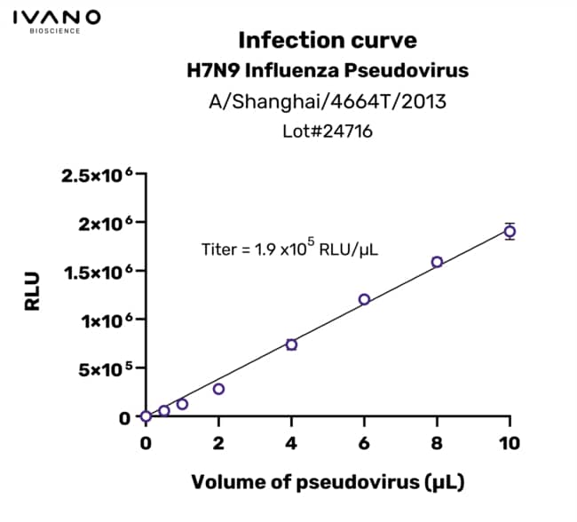 IVANO BIOSCIENCE Validated Influenza H7N9 pseudovirus (A/Shanghai/4664T/2013), 100 µL of pseudovirus enables 100 reactions in a 96-well plate.