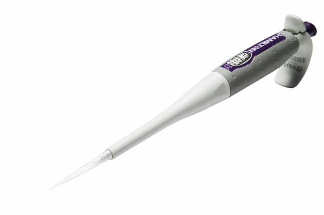 SoftGrip adjustable volume pipettes feature slim design that allows the pipette to reach the bottom of narrow tubes without the need for extended length tips. Designed to provide high accuracy, precision and reproducibility with liquid aspiration and dispensing. SoftGrip tip nozzle ensures a proper fit with all universal pipette tips. An isolated volume adjustment prevents accidental volume setting change. New duel indicator improves volume adjustment accuracy.