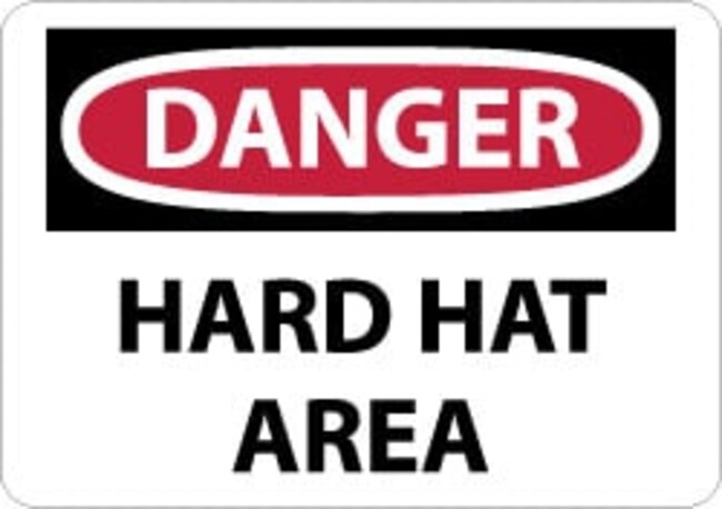 Sign: Rectangle, "Danger - Hard Hat Area"