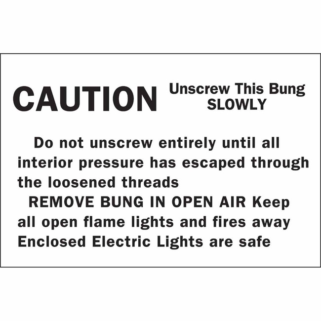 Brady™ Hazardous Material Shipping Labels: Black on White, CAUTION: UNSCREW THIS BUNG SLOWLY DO NOT UNSCREW ENTIRELY UNTIL…