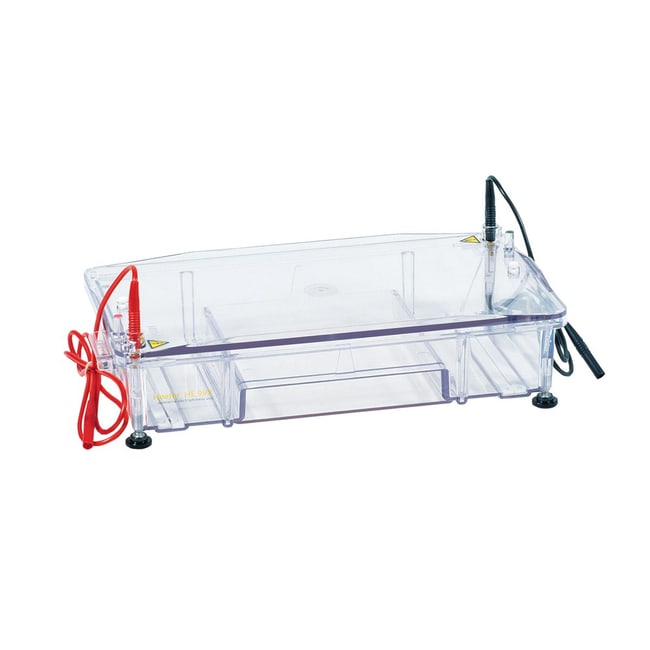 Offers a variety of gel lengths and comb sizes to enable the design of the gel required for optimum resolution of DNA fragmentsThe HE99X Max Agarose Electrophoresis Unit facilitates high resolution separation of nucleic acid fragments 100 bp to 20 kbp. Three different length trays are available for use with this unit.Features and BenefitsSelf-locating/centering guides—supports consistent running tray placementGel anchor feet—prevent the gel from floating or sliding during the runVariety of comb sizes—enables customization of sample throughput to fit your laboratory's requirementsAdjustable comb height—control well depthThree casting kits available—enabling users to run 15 x 20,15 x 15, or 15 x 10 cm gels in the same unitComplete Unit Includes:Buffer Chamber; Safety Lid with High Voltage Leads; Running Tray & Casting Tray, 15 x 20 cm; 15-well comb, 2 pcs; Comb Back, 2 pcs;Basic Unit Includes:The same as above without the Running Tray, Casting Tray, Comb, and Comb Back.