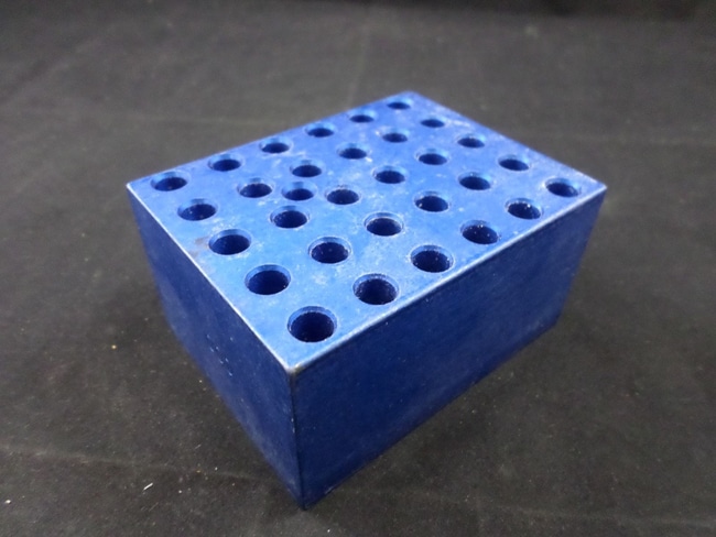 Modular Heating Block, 30-hole. Holds Tapered Microcentrifuge Tubes up to 0.5mL and 7.9mm dia. Solid aluminum, anodized blue modular block for producing maximum heat retention in and Signature Dry Block Heaters.