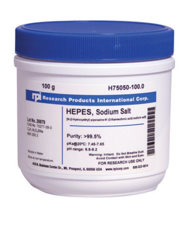 Research Products International Corp HEPES, Sodium Salt [N-(2-Hydroxyethyl) piperazine-N'-(2-ethanesulfonic acid)], 500 Grams