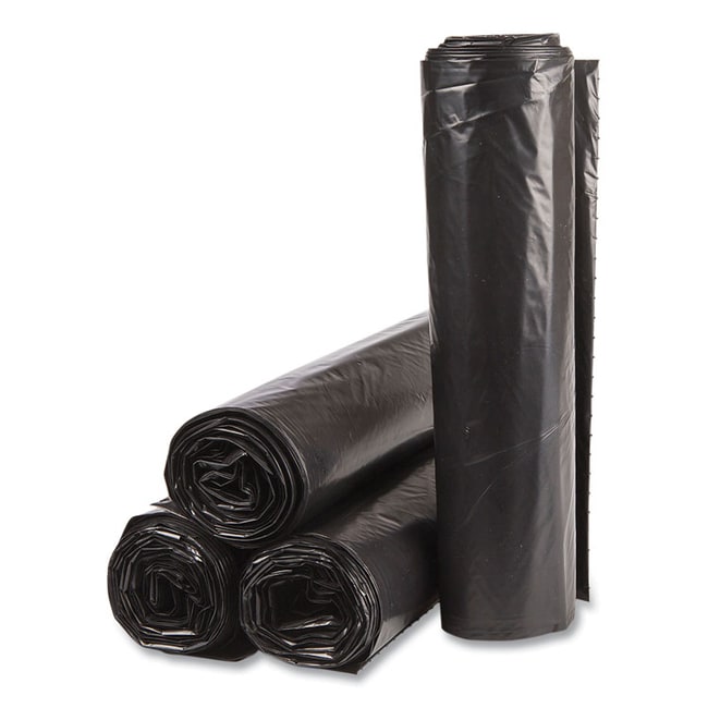 High-Density Commercial Can Liner Value Pack 45 gal 19 mic 40 x 46 Black Interleaved Roll 25 Bags/Roll 6 Rolls/CT