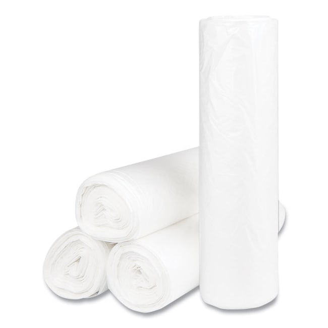 High-Density Commercial Can Liners 56 gal 14 mic 43 x 48 Natural Interleaved Roll 25 Bags/Roll 8 Rolls/Carton