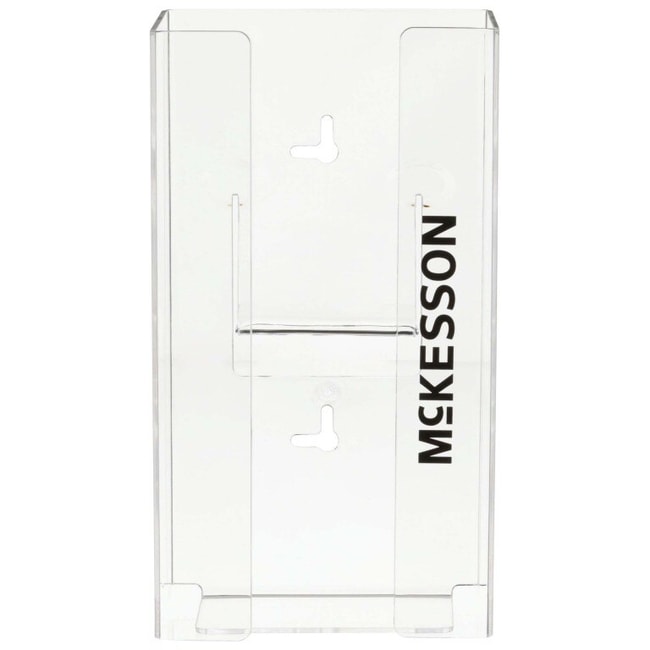Glove Box Holder McKesson Horizontal or Vertical Mounted 1-Box Capacity Clear 4 X 5-1/2 X 10 Inch Plastic This wall mount glove box holder has a clear plastic construction for durability and easy visibility It holds a single glove box The McKesson glove box holder can be placed horizontally or vertically on a wall Mounting hardware is included for your convenience This holder is free of latex to prevent skin allergies