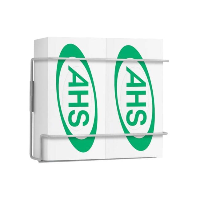 Wire Rack Disposable Glove Box Holder, available in white-coated steel, this sturdy dispenser holds two boxes vertically. See-through construction allows easy identification of gloves. Rack fits most glove boxes Helps keep glove boxes off counters or shelves Easy to mount and dispense.