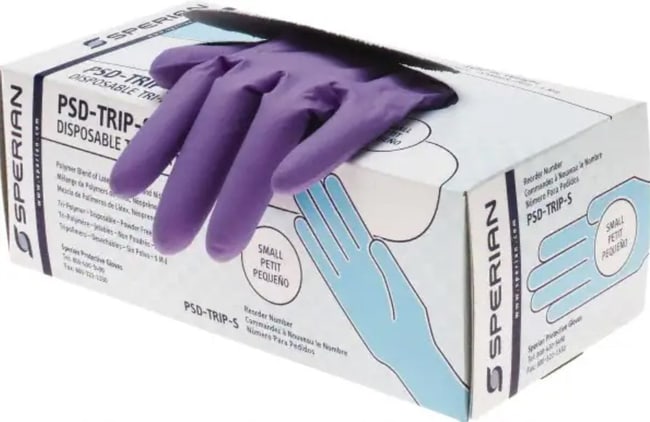 - Tri-polymer disposable gloves are constructed from a combination of latex, neoprene and nitrile