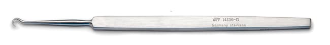 A Tyrell hook is a surgical instrument commonly used in neurosurgery, often in the removal of brain tumors or other types of abnormal tissue. Named after its inventor, Dr. Ivan Tyrell, who was a British neurosurgeon, the Tyrell hook is a long, slender instrument with a curved hook at the end. The hook allow the surgeon to gently manipulate and move tissue during the surgical procedure, while minimizing the risk of damage to surrounding structures such as blood vessels or nerves. A Tyrell hook may be used to carefully separate brain tissue or other structures, to help identify the margins of a tumor or abnormal tissue, or to guide the placement of other surgical instruments, electrodes, or probes. Be sure to clean, disinfect, and sterilize your surgical instruments promptly after each use to ensure a long life for your surgical tools. This Tyrell Hook is available in surgical grade stainless steel or our premium German steel.