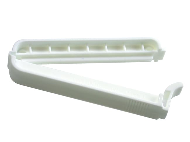 A hose clip used for temporary or permanent closing of silicone tubes. Allows easy closing and re-opening of silicone tubing. Ideal for all flow applications