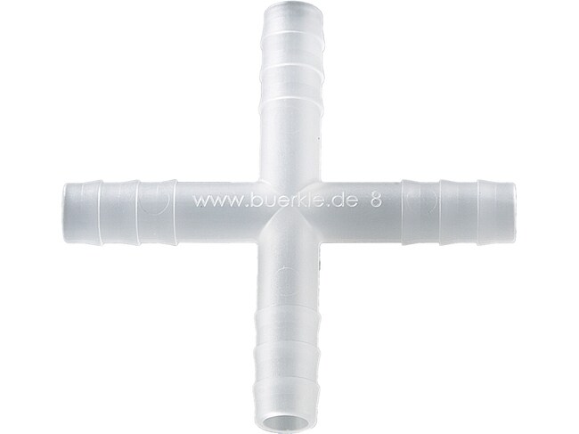 BURKLE INC Four-way-connectors PVDF, for Ø 0.28-0.35 in. (7-9 mm), cylindrical