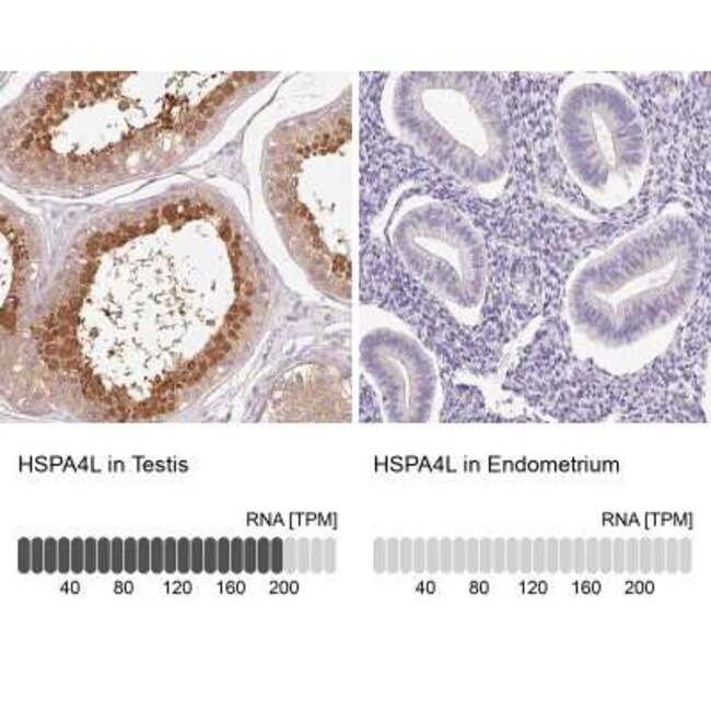 HspA4L Polyclonal antibody specifically detects HspA4L in Human samples. It is validated for Western Blot, Immunohistochemistry, Immunocytochemistry/ Immunofluorescence, Immunohistochemistry (Paraffin)