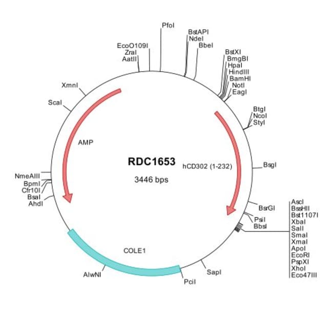 This shuttle vector contains the complete ORF for the gene of interest, along with a Kozak consensus sequence for optimal translation initiation. It is inserted NotI to AscI. The gene insert is flanked with convenient multiple cloning sites which can be used to easily cut and transfer the gene cassette into your desired expression vector.