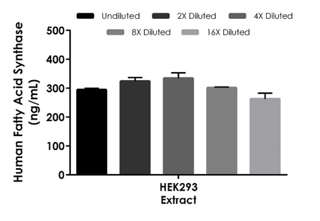 Human Fatty Acid Synthase ELISA Kit is a single-wash 90-min Simplestep used to quantify Human Fatty Acid Synthase with a sensitivity of 3.3 ng/mL. The assay uses a simple mix-wash-read protocol with just one incubation and one wash step. - Colorimetric Sandwich ELISA - 450 nm readout : works on any standard plate reader - Design your own immunoassay: we also offer the conjugation-ready antibody pair
