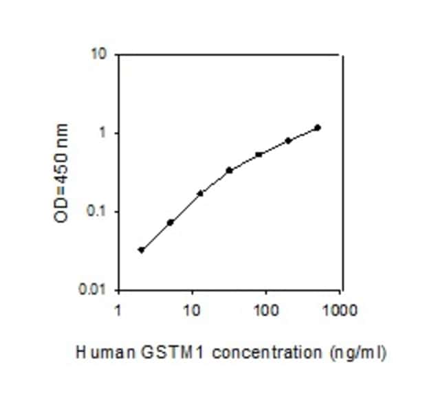 For serum, plasma, and cell culture supernatant samples. Sensitivity: 2 ng/ml. Pre-coated 96-well strip plate with additional reagents to allow for use in multiple experiments. Specificity: This ELISA antibody pair detects human GSTM1. Other species not determined.