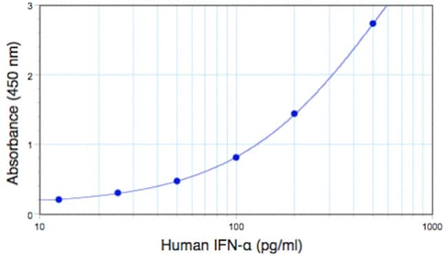 VeriKine Human Interferon Alpha ELISA Kit is manufactured by PBL Assay Science (Catalog #41100-2) for research use only (RUO) and packaged as a 5x96-well plate. This IFNa ELISA is Tissue Culture Media (TCM) compatible, quantifies Hu IFN-Alpha, and has an assay range of 12.5-500 pg/mL or 156-5,000 pg/mL. This ELISA kit has intra- and inter-assay CVs of less than 10%.