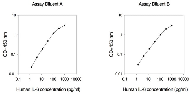 RayBio Human IL-6 ELISA Kit for cell culture supernatants, plasma, and serum samples. Pre-coated 96-well microplate kit with additional reagents. Detection Range: 3 pg/ml - 1000 pg/ml