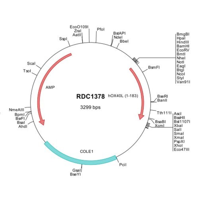 This shuttle vector contains the complete ORF for the gene of interest, along with a Kozak consensus sequence for optimal translation initiation. It is inserted NotI to AscI. The gene insert is flanked with convenient multiple cloning sites which can be used to easily cut and transfer the gene cassette into your desired expression vector.