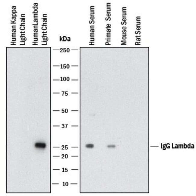 Human lambda light chain Monoclonal specifically detects Human lambda light chain in Human, Primate samples. It is validated for Western Blot.Specifications