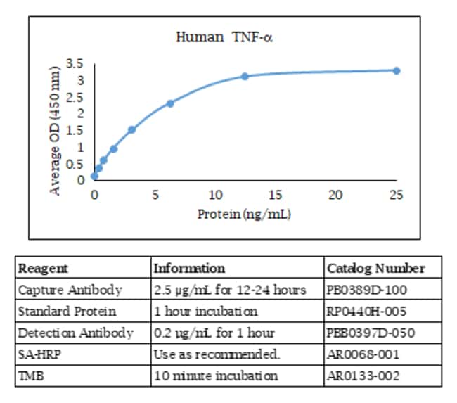 The Atlantic Salmon TNF alpha ELISA contains capture antibody, standard, and detection antibody for development of a Atlantic Salmon TNF alpha ELISA. The antibodies have been determined to function in an ELISA with the standard provided. Optimal buffers, concentrations, incubation times, incubation temperatures, and methods for the ELISA have not been determined. This allows for complete flexibility to provide optimal dynamic range and sensitivity based on your sample type. Alternate names include TNF, DIF, TNF-alpha, TNFA, TNFSF2, Tumor necrosis factor, tumor necrosis factor, TNLG1F, Tumor necrosis factor alpha. The quantities of components provided are not matched. Components may also be purchased separately. For research use only. Made in the USA