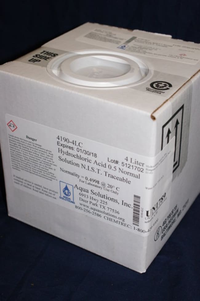 Aqua Solutions Hydrochloric Acid 0.5 Normal Solution NIST Traceable (4L)