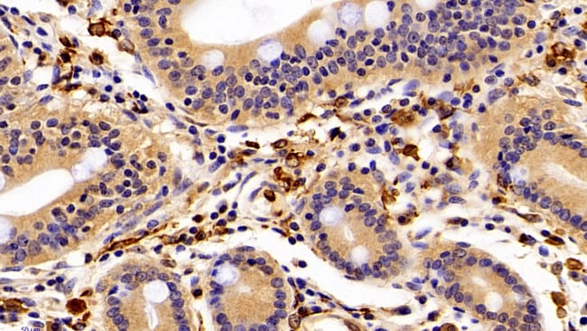 Ionized calcium-binding adapter molecule 1 (IBA1), also known by its gene name AIF1, is a protein expressed predominantly by microglia in the brain and spinal cord. This protein belongs to the EF-hand calcium-binding protein family and plays a crucial role in microglial activation and migration in response to brain injury or neuroinflammation. IBA1's function is integral to microglial motility and phagocytic activity, facilitating the cellular response to pathogenic stimuli and promoting tissue homeostasis and repair in the central nervous system. IBA1 serves as a reliable marker for activated microglia in various neurological disorders, including Alzheimer's disease, Parkinson's disease, and multiple sclerosis, where increased expression correlates with disease progression and severity. The protein's structural features enable it to bind calcium ions, inducing conformational changes that activate signaling pathways essential for microglial function. Its expression is highly regulated by inflammatory cytokines, underpinning its role in neuroimmune responses. Due to its specific expression in microglia during pathological conditions, IBA1 is widely used in research as a marker to study microglial status and activity, and it remains a focal point for understanding microglial involvement in neurodegenerative diseases.Specifications