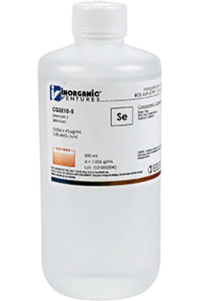 Inorganic Ventures' 10,000 ppm (µg/mL) Selenium for ICP is a 500mL certified reference material set in a nitric acid matrix for stability. This selenium standard is Traceable to NIST and manufactured in accordance with our stringent Quality Assurance guidelines. See Certificate of Analysis for expiration.