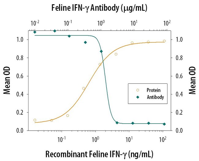 In direct ELISAs, less than 1% cross-reactivity with human, mouse, rat, and porcine IFN-gamma is observed. Reconstitute at 0.2 mg/mL in sterile PBS. Endoxin level is <0.10 EU per 1 μg of the antibody by the LAL method.