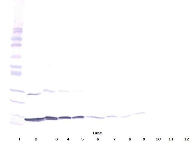 AA Sequence of recombinant protein: MQGTLIESLE SLKNYFNSSS MDAMEGKSLL LDIWRNWQKD GNTKILESQI ISFYLRLFEV LKDNQAISNN ISVIESHLIT NFFSNSKAKK DAFMSIAKFE VNNPQIQHKA VNELIRVIHQ LSPESSLRKR KRSRC. Preparation: Produced from sera of goats immunized with highly pure Recombinant Rat IFN-gamma. Anti-Rat IFN-gamma-specific antibody was purified by affinity chromatography and then biotinylated. Sandwich ELISA: To detect Rat IFN-gamma by sandwich ELISA (using 100 μL/well antibody solution) a concentration of 0.25-1.0 μg/mL of this antibody is required. This biotinylated polyclonal antibody, in conjunction with PeproTech Polyclonal Anti-Rat IFN-gamma (500-P122G) as a capture antibody, allows the detection of at least 0.2-0.4 ng/well of Recombinant Rat IFN-gamma. Western Blot: To detect Rat IFN-gamma by Western Blot analysis this antibody can be used at a concentration of 0.1-0.2 μg/mL. When used in conjunction with compatible secondary reagents, the detection limit for Recombinant Rat IFN-gamma is 1.5-3.0 ng/lane, under either reducing or non-reducing conditions. 500-P122GBT-1MG will be provided as 2 x 500 μg