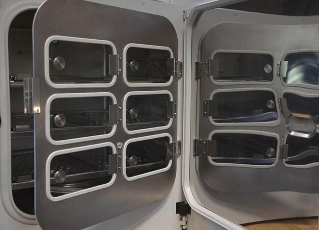 - Because each opening affects a smaller volume, the incubator needs less CO2 (and N2 in hypoxic mode) to return to the desired atmosphere, which can cut gas use by 40 to 80% compared with a single large inner door.