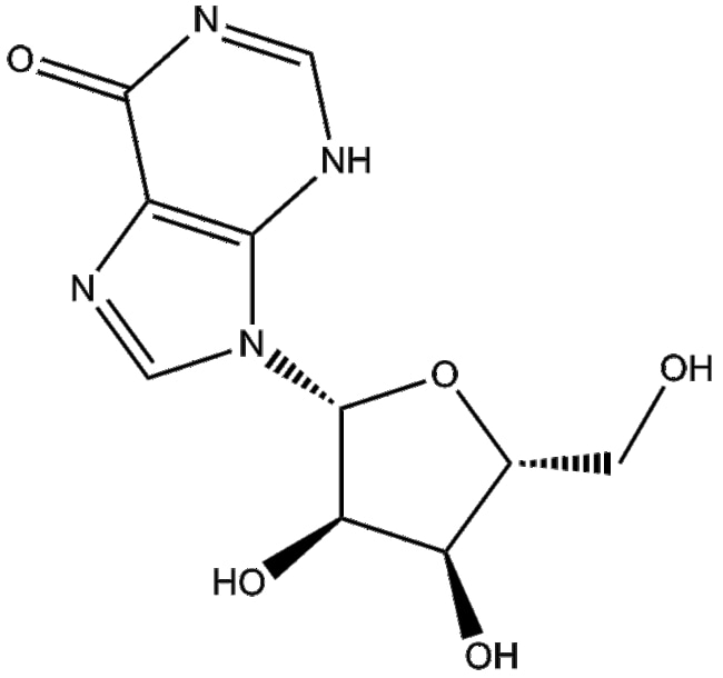 Inosine (58-63-9) is an endogenous purine nucleoside It participates in purine catabolic and salvage pathways facilitating nucleotide synthesis and uric acid formation Inosine is structurally composed of hypoxanthine linked to a ribose sugar moiety It is also present in specific tRNA anticodons influencing translational processes Inosine exerts its biological activity by serving as an intermediate in purine metabolism and modulating nucleotide recycling and tRNA modifications In biochemical and cell biology studies inosine is utilized as a tool compound to investigate purine metabolism nucleotide recycling pathways tRNA modifications receptor-mediated signaling and immune regulation in vitro Reported IC50 values may vary depending on biological models and experimental conditions applied Based on these pharmacological properties inosine holds research potential in studies of purine metabolism nucleotide synthesis RNA biology and immune regulation