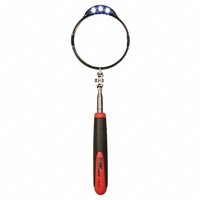 The Ullman 3-3/8" Inspection Mirror is a chrome-plated steel mirror with a 3-3/8" diameter. It has a telescoping handle that extends from 7" to 15" for inspecting hard-to-reach places. The mirror provides a clear, distortion-free reflection. It can be used for auto repair, plumbing, electrical work, HVAC, and machinery inspection. This durable inspection mirror is ideal for mechanics, maintenance workers, and do-it-yourselfers.
