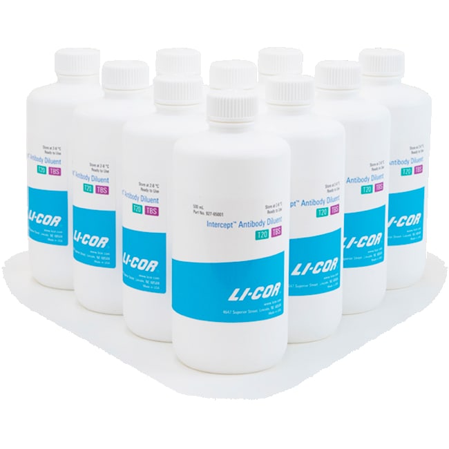 Intercept T20 (TBS) Antibody Diluent improves the specificity of the primary and secondary antibodies, reducing off-target effects. The diluent contains Intercept (TBS) Blocking Buffer in Tris-buffered saline (TBS) preformulated with Tween 20. Since there’s no need to mix the diluent yourself, it saves you time and reduces potential variation. Intercept T20 (TBS) Antibody Diluent contains a 0.05% concentration of Tween 20. It contains no sodium azide and is stored at 4 °C.