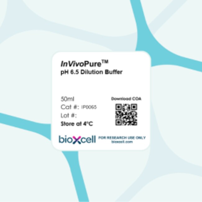 InVivoPure pH 6.5 Dilution Buffer is a ready-to-use buffer formulated and tested for in vivo antibody applications. It is low in endotoxin, screened for common murine pathogens, and evaluated in animal models for toxicity to support safe and reproducible antibody dosing.