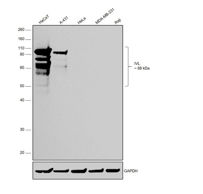 MA5-11803 targets Involucrin in ELISA, IF, IHC (P), IP, and WB applications and shows reactivity with Canine, Human, Non-human primate, Porcine, and Rat samples. The MA5-11803 immunogen is human keratinocytes' involucrin.