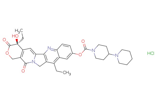 eMolecules Medchem Express / Irinotecan (hydrochloride) / 50mg / 446267504 / HY-16562A / / 100286-90-6 / MFCD01862255 / 623.150 / C33H39ClN4O6