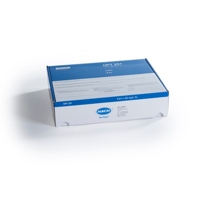 Iron HPT chemistry and your Hach spectrophotometer are engineered to simplify water analysis for accurate results, everytime. For determination of very low Iron concentrations, e.g. in industrial or municipal water samples by the 1.10-Phenanthroline Method. Convenient handling using 50 mm rectangular vials. Optional digestion with TNT890 to evaluate total iron. 20 ULR Iron vials per box.