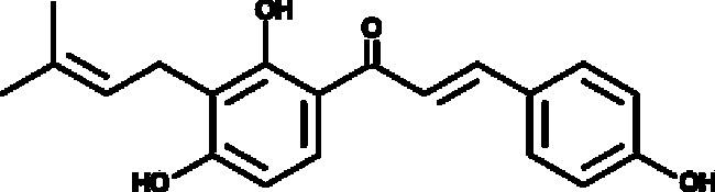 A chalcone and flavonoid with diverse biological activities; active against C. albicans and C. neoformans (IC50s = 3 and 7 UG/ml, respectively), as well as T. rubrum and M. audouinii (MIC = 1.2 UG/ml for both); active against various bacteria (MICs = 4.9-39.1 UG/ml); induces mitochondrial-mediated apoptosis in IMR-32 and NB-39 human neuroblastoma cells; inhibits the proliferation of OVCAR-8 ovarian, PC3 prostate, MCF-7 breast, and A549 lung cancer cell lines; reduces dopaminergic neuronal cell death and increases the stay time in the rotarod test in a mouse model of MPTP-induced Parkinson’s disease at 50 mg/kg