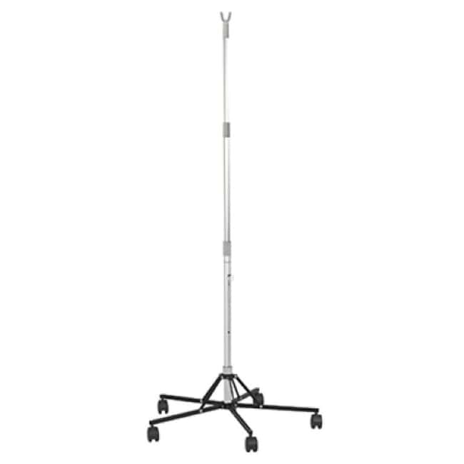 Disposable IV Stand Floor Stand McKesson 2-Hook 5 Caster Plastic Base 5 caster wheels for smooth easy manueverability and stability Sturdy aluminum frame Two hooks to hold mulitple bags Height is adjustable up to 74 inches Disposable IV pole for convenient use