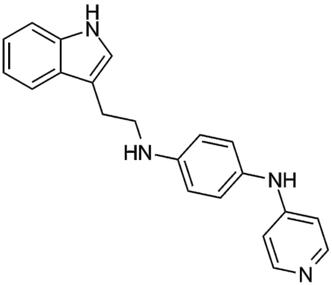 JNJ-26854165 (Serdemetan CAS 881202-45-5) is a small-molecule antagonist targeting human double minute-2 (HDM-2) ubiquitin ligase originally developed as a p53 activator Mechanistically JNJ-26854165 disrupts the association between HDM-2 client protein complexes and the proteasome resulting in elevated levels of downstream HDM-2 substrates such as p53 In preclinical studies using multiple tumor models with either wild-type or mutant p53 this compound exhibited potent antiproliferative activity and apoptotic induction In vivo xenograft studies showed significant event-free survival benefits across numerous solid tumor and acute lymphoblastic leukemia models suggesting potential utility in oncology research