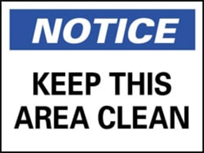 Security & Admittance Sign: Rectangle, "Notice, KEEP THIS AREA CLEAN"