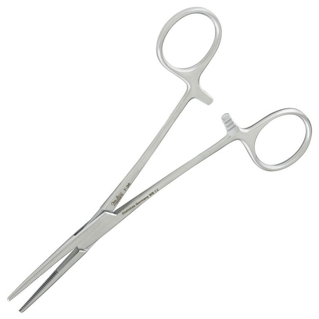 The Miltex Vantage V97-36 Kelly forceps are made from high quality Japanese stainless steel and measure 5". They have a finger ring handle with a ratchet lock and straight tips with serrations.