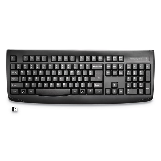 Spill-proof Pro Fit Wireless Keyboard features a thin sealed membrane that repels water and other liquids keeping the wiring safe The keyboard is full-size with 6 rows and includes a numeric keypad giving the touch typist a professional experience for enhanced productivity With a 2 4 GHz nano receiver your desktop stays uncluttered since there s no wiring to get in your way plus you gain the freedom to easily take your keyboard on the go if needed With Plug and Play installation simply insert the receiver into your device and you ll be typing in no time Compatible with Windows Wired/Wireless- Wireless Maximum Wireless Range- 30 ft Connector/Port/Interface- USB For Device Type- Desktop